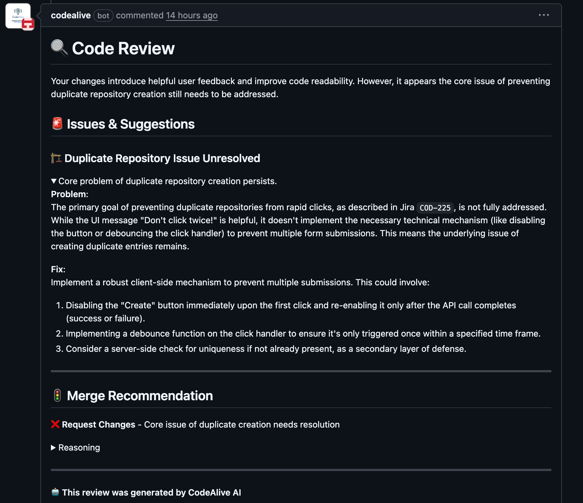Automated, context-aware code reviews that understand your project's specifics, helping you improve code quality and consistency, with built-in Jira integration.
